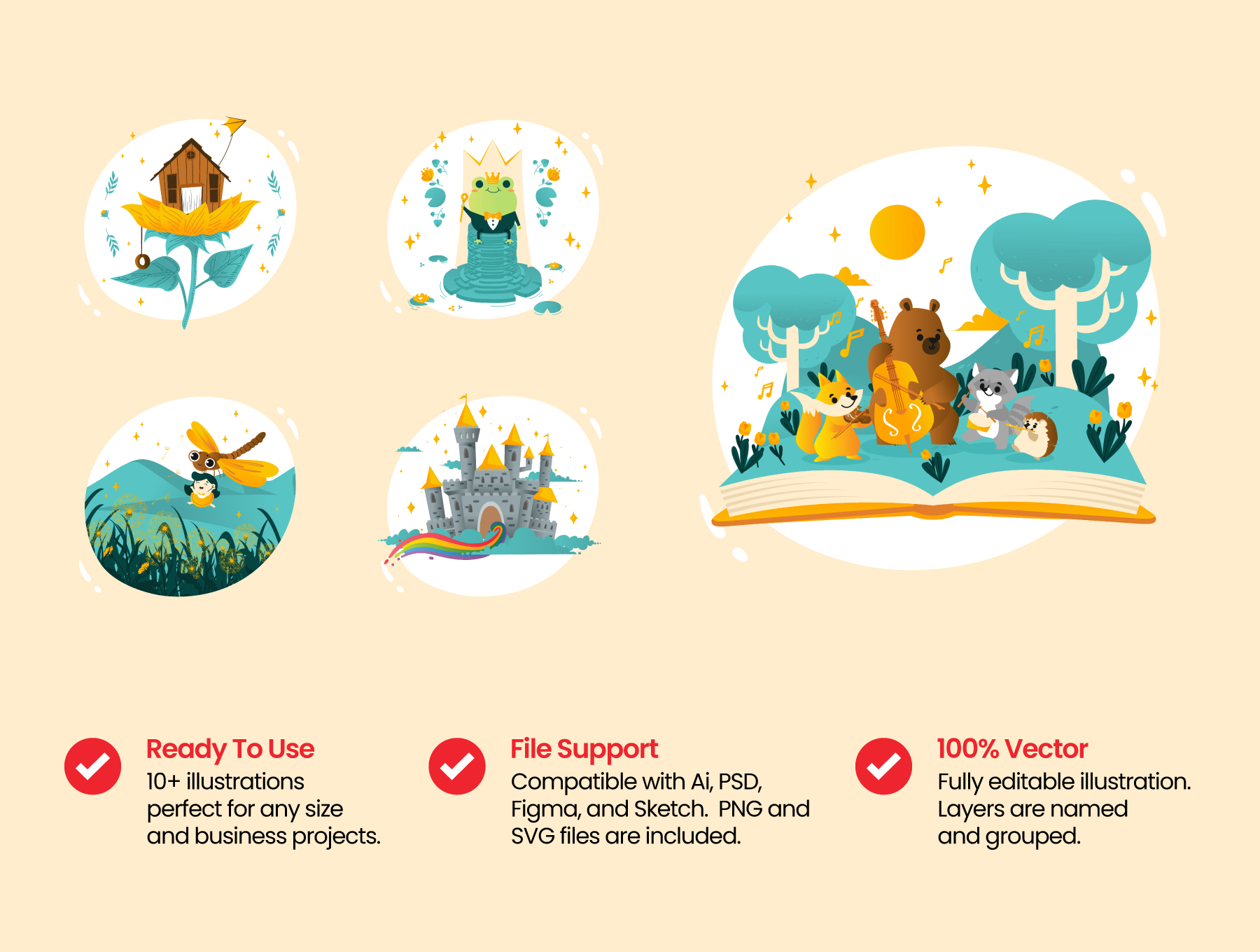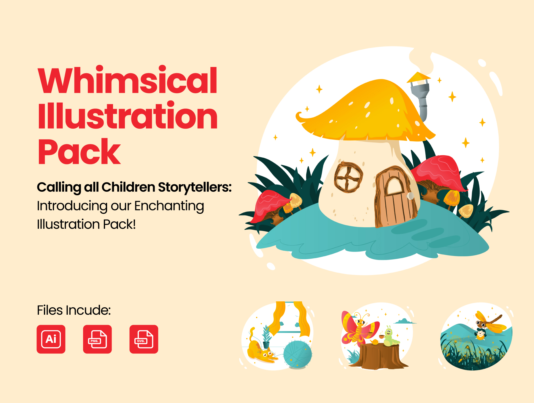Unleash the power of imagination and creativity with our whimsical illustration pack!